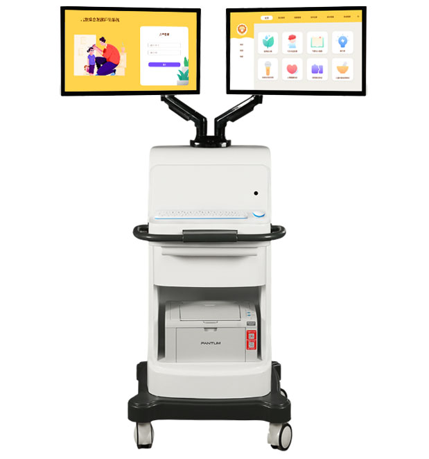 主机配置:高端品牌计算机,21.5寸液晶触摸显示屏,高清摄像头,豪华可移动医用台车,高端黑白激光打印机。