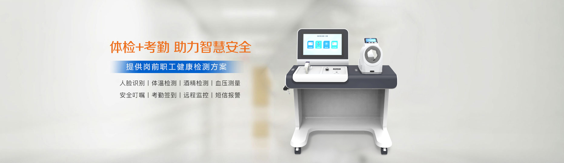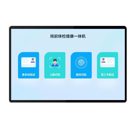 新款岗前健康检测一体机,又名岗前体检一体机,驾驶员自助体检机,岗前检测一台机,岗前检查一体机等,应用于城市公交、物流等运输企业,司机上岗前“ 身份识别、血压、心率、酒精、体温、血氧、指纹识别、考勤打卡” 等项目的测试考核,同时有岗前报班排班系统等,与传统的人工岗前考勤相比,全流程自动化,优势十分明显。