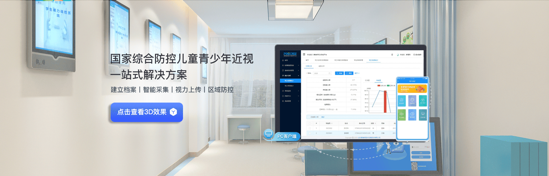 悟空体育青少年视力防控平台是运用互联网、物联网和移动通信等技术快速筛查青少年视力并建立健康档案的系统。由近视防控数据管理软件系统、电子视力检测仪、视力筛查仪组成,通过视力检测筛查设备,自助采集汇总数据并上传至云平台。支持视力数据采集、查询、统计、分析、存档于一体,通过分析体检者视力发展趋势,对不同视力人群进行健康干预和指导。