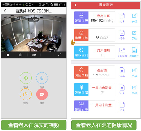 家属可通过智能化管理系统清晰明了的看到老人每天的身体情况、护理情况、日常活动、各项消费及可用余额;还能查看老人视频、照片、进行在线充值缴费。