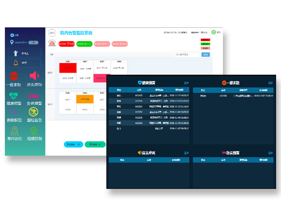 当发生各类报警时,硬件发出的告警可统一发送到告警监控系统,如定位终端、一键呼叫、电子血压仪、血糖仪、智能床垫等,时时监控管理老人安全、健康情况,当有异常,系统自动弹出报警提示窗口,值班人员可以查看具体由哪个设备、关联老人、具体位置,进行快速的应急处置。